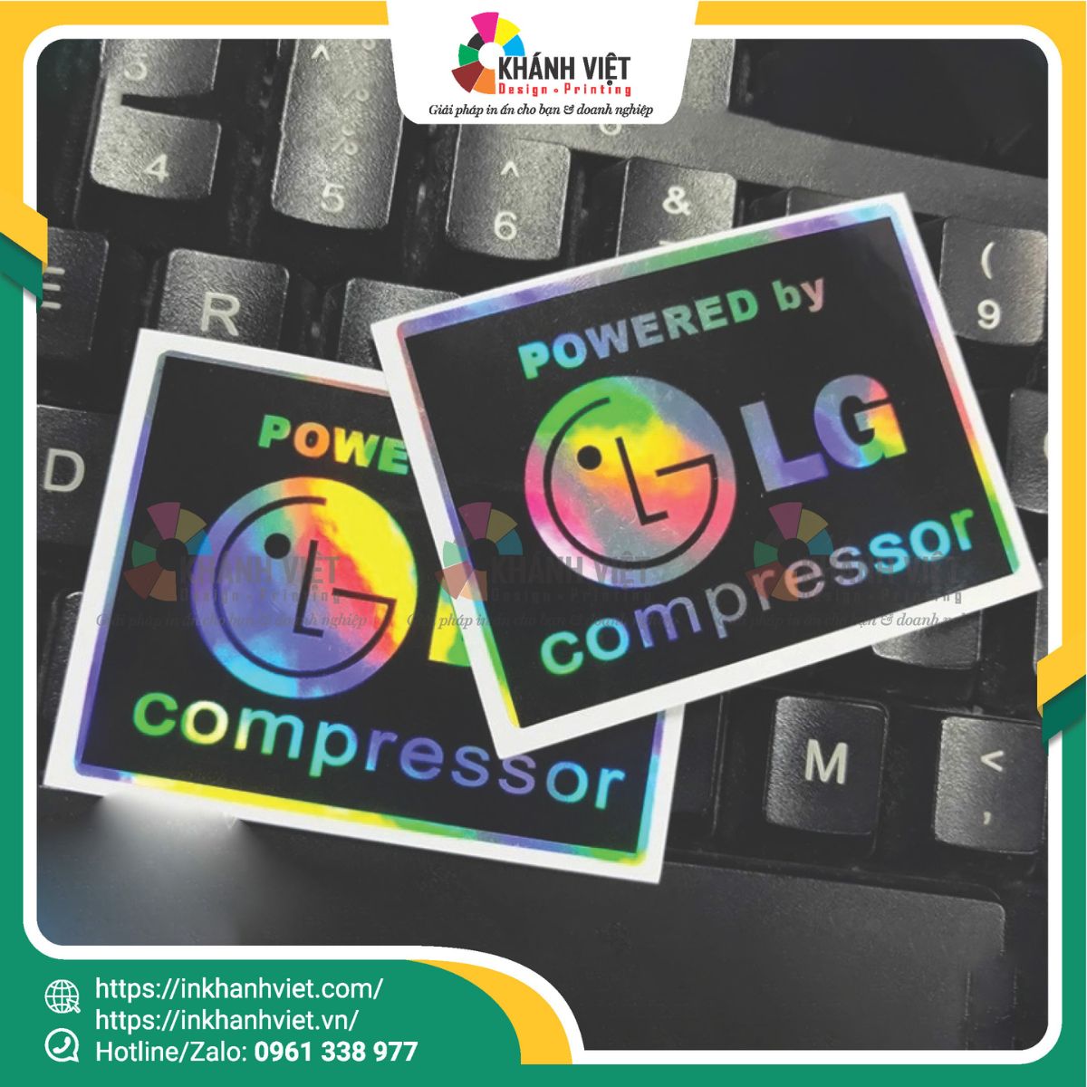 Một logo không chỉ để nhận diện, mà còn để khẳng định vị thế. In logo 7 màu mang đến hiệu ứng ánh kim hologram đổi màu độc đáo, biến hình ảnh thương hiệu trở nên sống động và khó quên.