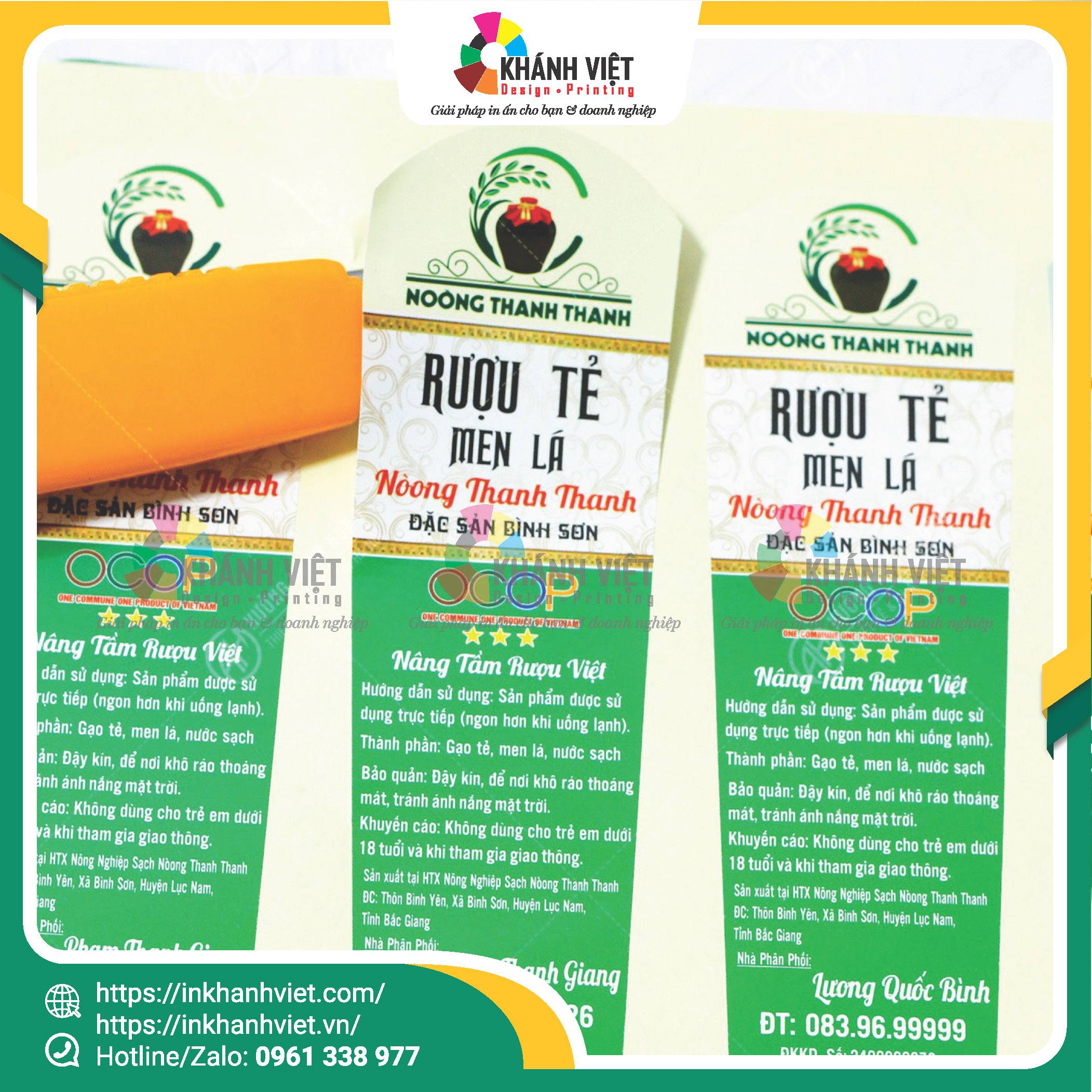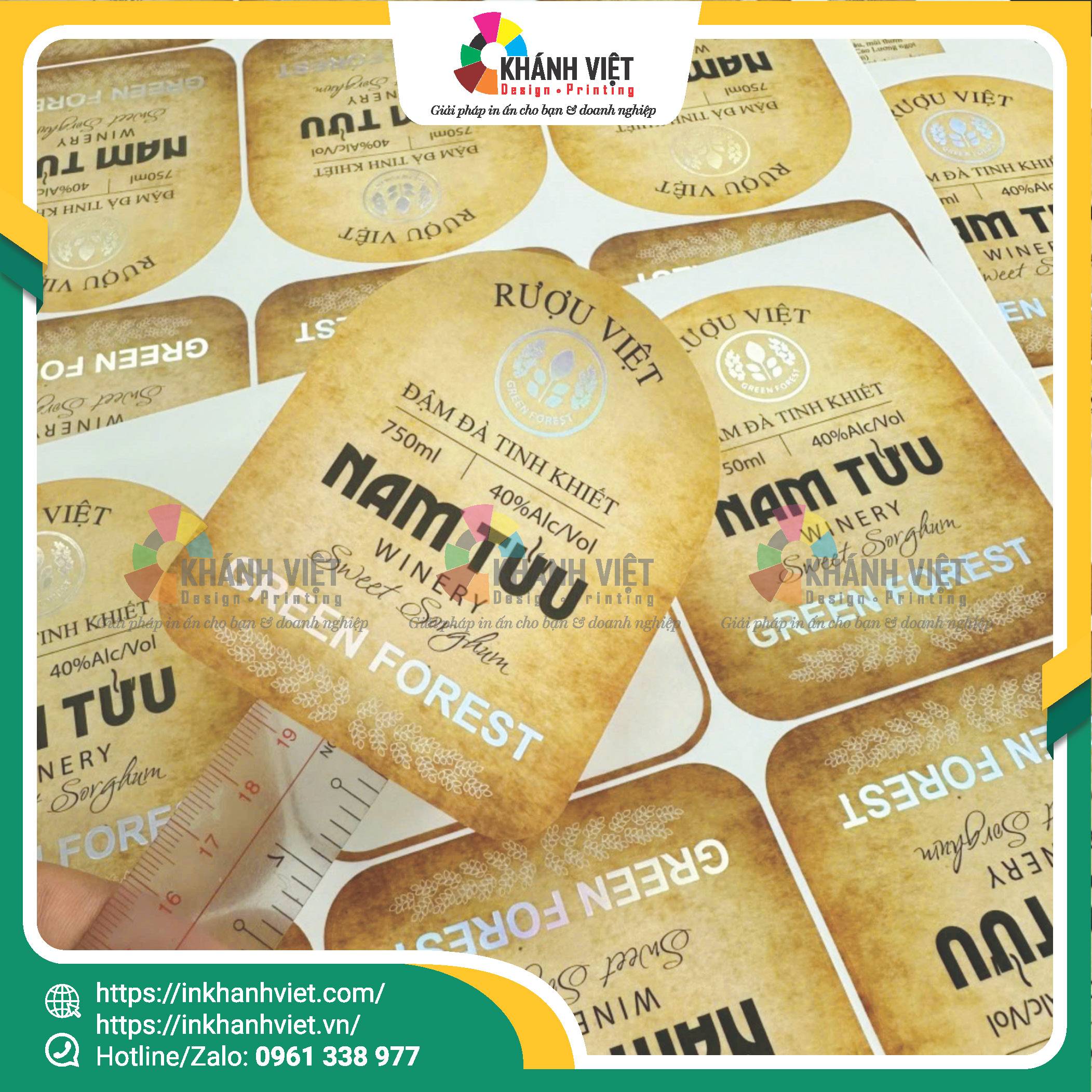 Tem rượu giấy – nhựa là nhãn dán thể hiện thông tin sản phẩm như tên rượu, nồng độ cồn, dung tích, xuất xứ và các chi tiết thiết kế đặc trưng. Tem giấy mang lại cảm giác truyền thống, mộc mạc, phù hợp với rượu vang, rượu thủ công; trong khi tem nhựa có độ bền cao, chống thấm nước, thích hợp cho các sản phẩm rượu cần bảo quản hoặc trưng bày lâu dài. Cả hai chất liệu đều có thể in sắc nét, bám dính tốt và kết hợp các kỹ thuật như ép kim, phủ UV để tăng tính thẩm mỹ.